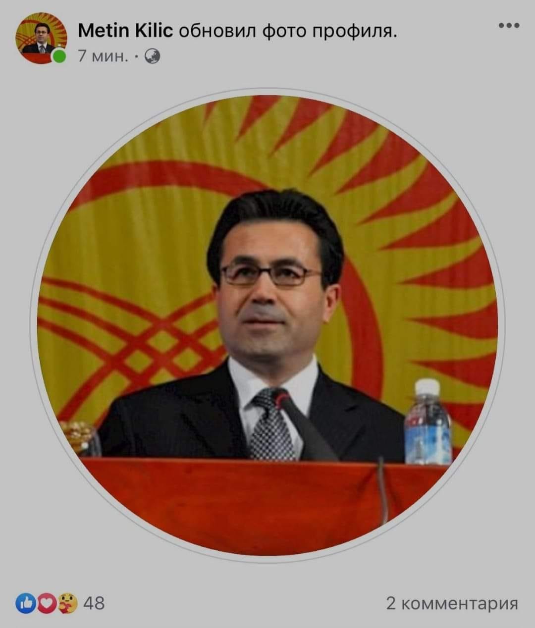 --"Чыныгы дос ким, душман ким билинип жатат! Бар болуңуз Метин мырза! Түркиянын Кыргызстандагы мурдагы элчиси Метин Кылыч Кыргызстанды колдоо максатында профилин кыргыз желеги менен түшкөн сүрөткө алмаштырды.