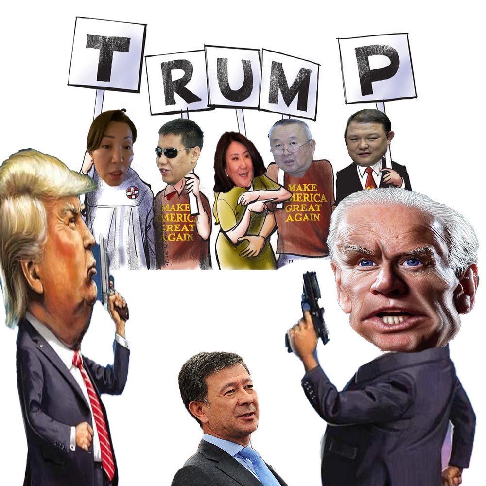 АКШда Байденге каршы Трамптын да чекеси көрүнүп турат. Байдендин учакка түшүп баратып мүдүрүлгөнүн Трамп дүйнөгө даңаза кылды. Трамп президент кезинде АКШ ким бийликке каршы чыкса ошону колдоого ала турган болуп калган, азыр деле ошол кейпинен жаза элек. Анткен, себеби АКШнын саясатына каршы ШКУ, ЖККУ, ЕАЭБ уюмдары бар, ушул уюмдарга кирип Кыргызстан Орусиянын саясатын колдоп жатканы белгилүү. “Ким мени менен болбосо, ал менин душманым”- деген принципти колго алган АКШнын мурунку президенти Дональд Трамп Кыргызстанды Иран, Ливия, Сомали, Сирия, Йемен, Чад, Ирак, Судан, Венесуэла, Корея ЭДР мамлекеттери менен тең карап, Белоруссия, Мьянма, Нигерия, Судан жана Танзания менен бирге кирүүгө тыюу салган мамлекеттердин катарына кошкон. Биз менен ШКУлаш, ЖККУлаш, ЕАЭБдеш Белоруссиядан башкалары канкор, баңгизатка батышкан, желдеттер баш кесерлерге толгон согушчул, эң жакыр мамлекеттер. Албетте, Трамптын оюу боюнча АКШдан беш жылдык виза алгандар кирип-чыгып жүрө беришмек. Бул Кыргызстандын башка бардык жарандарына, айрыкча АКШка баш ийбеген жарандарга атылган ок болчу. Ошол эле мезгилдерде АКШ Кыргызстанга өзүнө тиешелүү келишимдерге кол коюуга мажбурлап жаткан. Экс-президент Сооронбай Жээнбеков бул мыйзамдарга кол койбой жаткан, анткени биздин мамлекет менен өнөктөш мамлекеттер үчүн бул келишим уу болчу. Ошондуктан АКШ Кыргызстанды бүлүнтүү максатында 4 млрд. 200 млн сомдук накта 60 млн.сомду жөнөтүп, СДПК сыяктуу соолуп бараткан партияларды колдоп жатканы элибизге керек беле? Коронавирус гана алардын ишине тоскоолдук кылып турган.