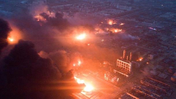Синьхуа агенттигинин кабарына караганда айыл – чарба дарыларын өндүргөн химия заводунда чыккан жарылууга заводдо чыккан жана жайылган өрт себеп болду.