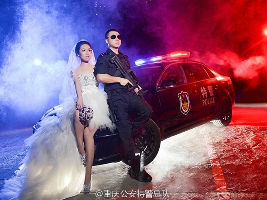 Кытайда полиция кызматкери түшкү тыныгуу учурунда үйлөндү.