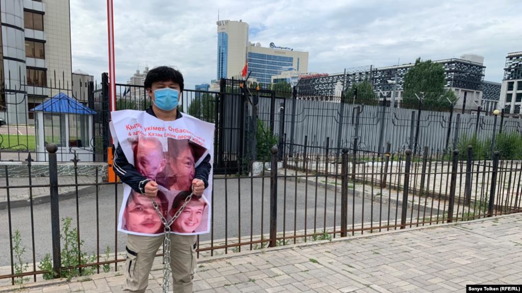 26-июнда Кытайдын Нур-Султандагы элчилигинин алдында Шинжаңдагы туугандарынын Казакстанга келүүсүнө уруксат берүү чакырыгы менен эки киши акция өткөрдү. Бул тууралуу Борбордук Азия жаңылыктары жазып чыкты.