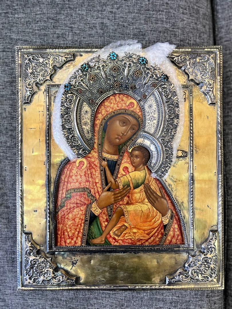 Маалыматка караганда, жүктү текшерүүдө чемодандын ичинен иконалар түрүндөгү декларацияланбаган буюмдар, ошондой эле ассортименттеги сүрөттөр: 1 даана жыгач рамкадагы сүрөт, 4 даана чоң иконалар, 4 даана жыгачтан жасалган кичинекей иконалар, 3 даана кичинекей металл иконалар, 4 даана кагаз рамкалар, кагазга түшүрүлгөн 4 картина, 1 китеп (Орус иконасынын модерни), 1 штамп (Василий Павлович Гурьяновдуку), 2 картинанын бөлүгү табылган. Баарынын тиешелүү документтери жок болгон.