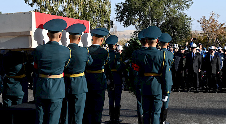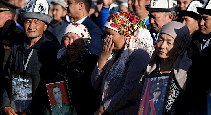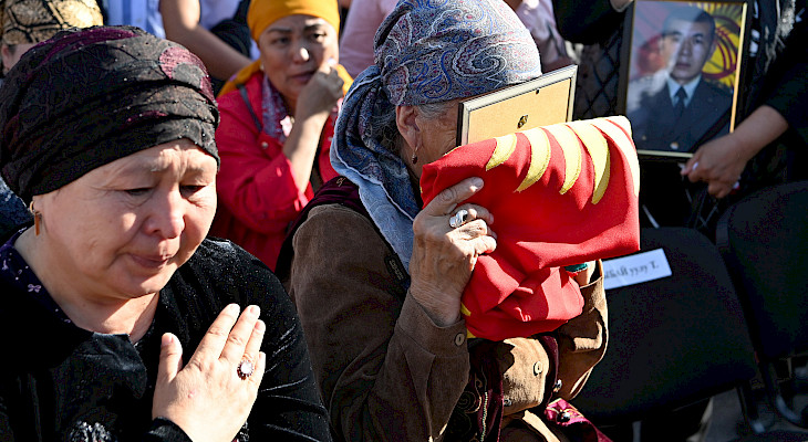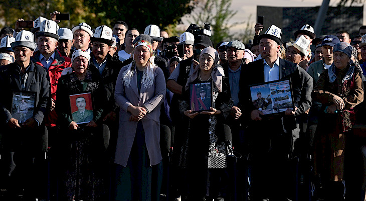 Мамлекет башчысы курман болгондордун жакындарына жана туугандарына терең кайгыруу менен көңүл айтып, митинг-реквием өттү.