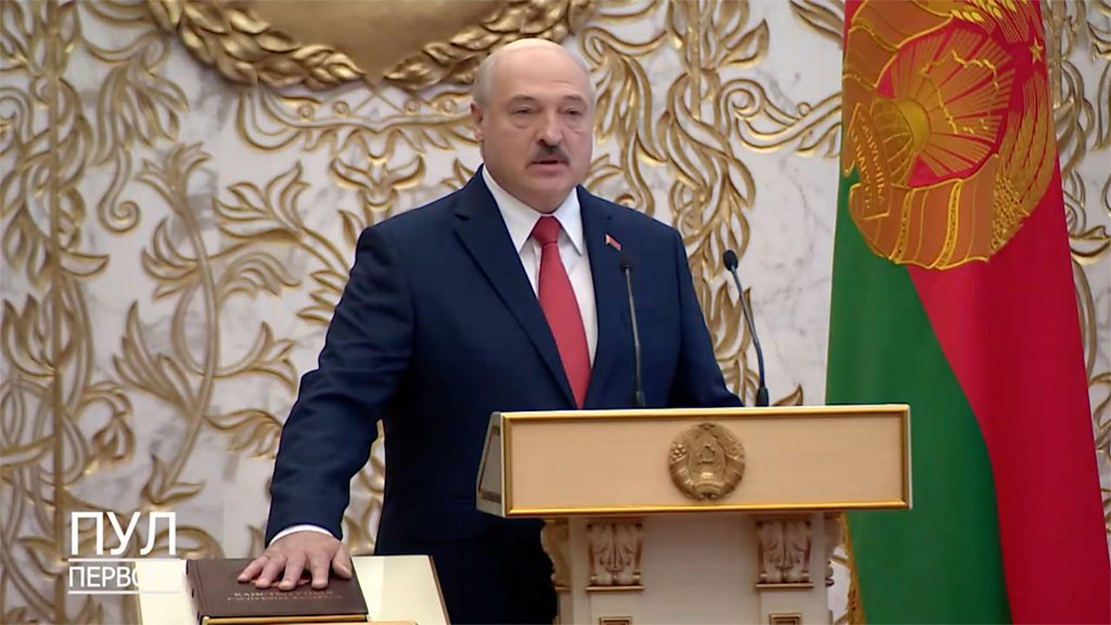 Лукашенконун инаугурация аземи 23-сентябрда Эгемендүүлүк сарайында өткөн. Алдын-ала жарыяланган эмес, ага 100гө жакын гана адам катышкан. Ант берүү аземи сыналгыдан көрсөтүлгөн эмес жана ММКларга да жарыяланган жок. Белоруссиянын мыйзамдарына ылайык, Лукашенко инаугурация жөнүндө эч кимге билдирүүгө милдеттүү эмес.