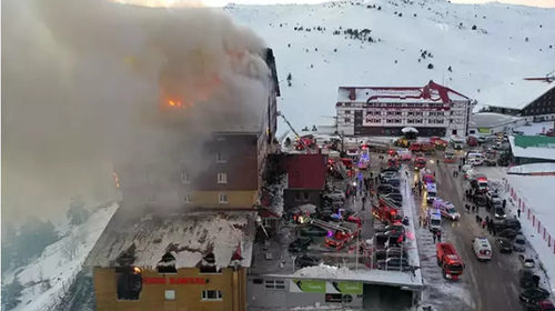 Түркиянын Болу шаарындагы лыжа курортунда чыккан өрттүн кесепетинен 10 адам каза болуп, дагы 32 адам жаракат алды. «CNN Turk>>> телеканалынын алгачкы маалыматы боюнча, өрт деңиз деңгээлинен 2000 метр бийикте жайгашкан «Карталкая» тоо лыжа мейманканасынын имаратында болгон.