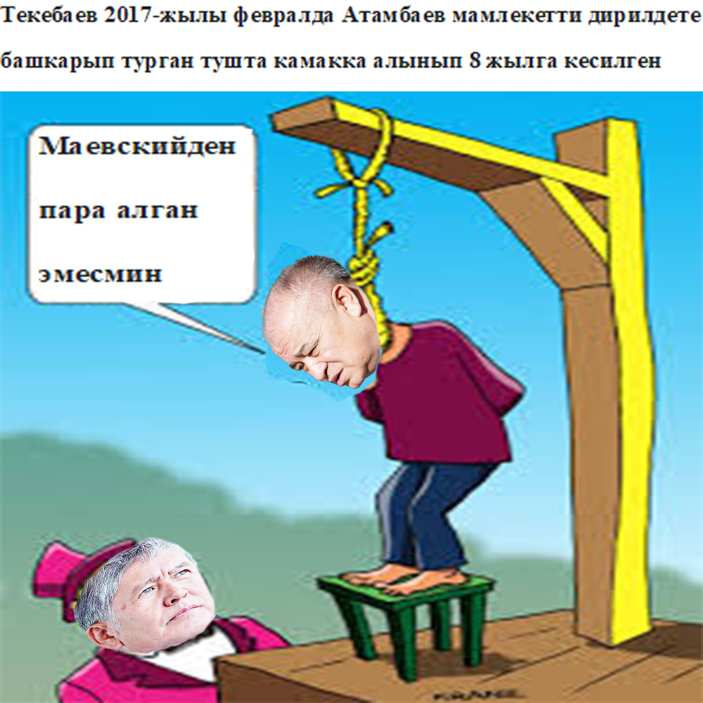 Түрмөнүн түбүндө чирисин деп Текебаевди мамлекет башында турганда Убактылуу Өкмөт тарабынан шериктеши Атамбаев мойнуна кылмыш илген. "Ата Мекен" партиясынын лидери Өмүрбек Текебаев 2017-жылы февралда, Алмазбек Атамбаев Кыргызстанды башкарып турган тушта камакка алынган.