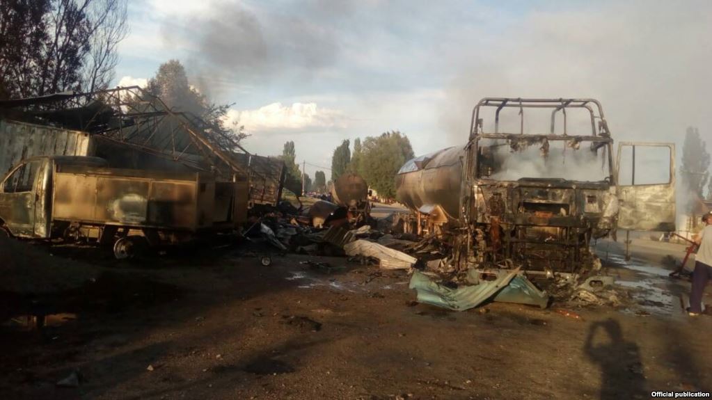 Эң өкүнчтүүсү эки адамдын өмүрү кыйылды. Дагы алты адамдын денелери 80,90 пайызы күйүп кеткен. Төртөөнүн акыбалы өтө оор дешет. Каза болгон эки адам ата-бала деп жатышат. Алар чоң автоунаанын ичинде тирүүлөй өрттөнүп кетишкен. Кичине бала болгону үч, төрт жаш болуш керек деген маалымат бар.