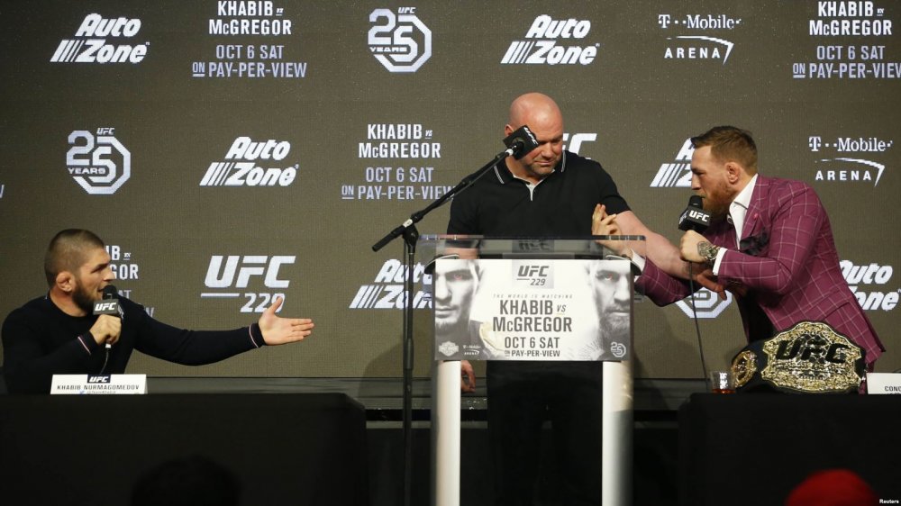 Конор МакГрегор атаандашы Хабиб Нурмагомедовду оңой эле жеңип, UFC чемпиондук наамын кайтарып аларын билдирди. 20-сентябрдагы “тиктешүү” салтанаты учурунда экөө кайым айтыша да кетишти. Залга бир бөтөлкө виски көтөрө кирген МакГрегор апрелдеги окуяны улам эске салып жатты. Анда мушкер бир топ шериктери менен Нурмагомедов отурган автобуска кол салып, терезесин талкалаган.