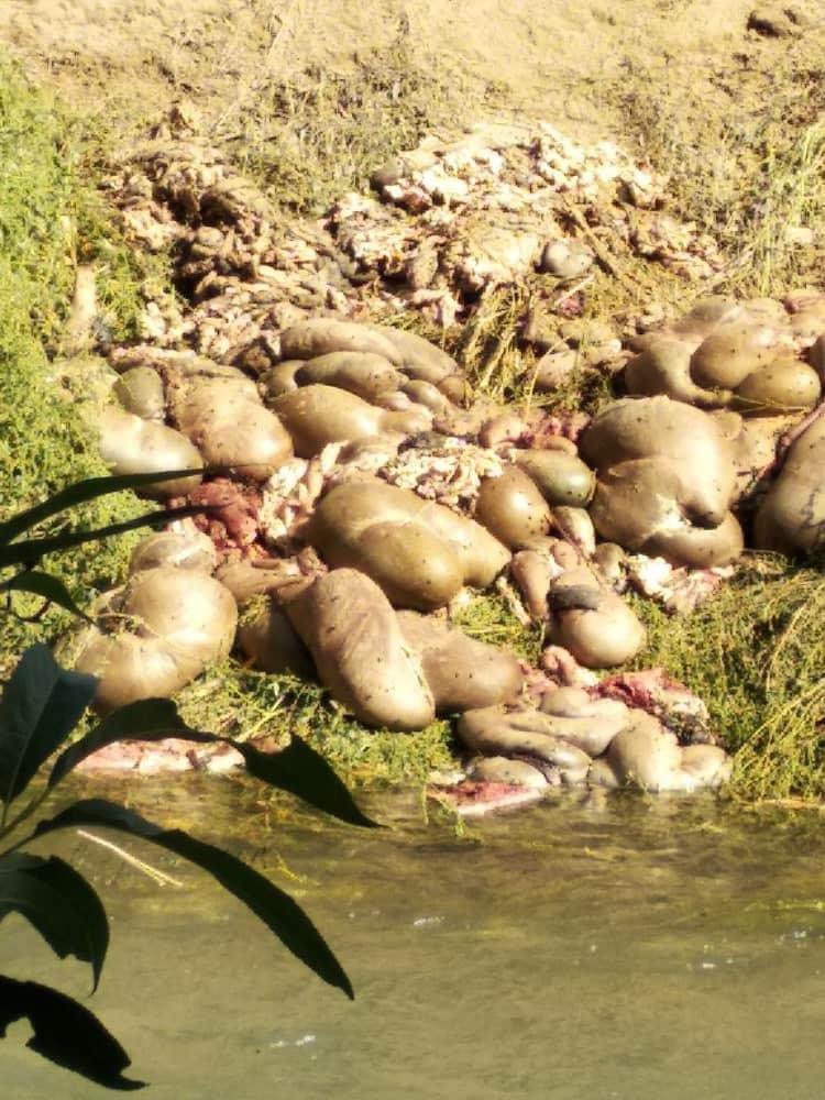 Жайнаган малдын ич эттерин байма-бай сууга ыргытышууда. Бул тууралуу Аламүдүн районуна караштуу Маевка айылынын тургуну тартып алган видеодон белгилүү болду.