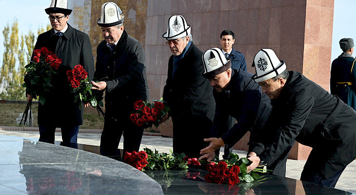 Жогорку Кеңештин төрагасы Нурланбек Шакиев, Жогорку соттун төрагасы Замирбек Базарбеков, министрлер кабинетинин төрагасынын биринчи орун басары Адылбек Касымалиев, министрлер кабинетинин төрагасынын орун басары Эдил Байсалов жана башкалар менен биргеликте алар 1916-жылдагы трагедиялуу окуялардын курмандыктарына арналган эстелик мемориалына, саясий репрессиянын курмандыктарына арналган эстелик мемориалына жана жазуучу Чыңгыз Айтматовдун бейитине гүл коюшту.