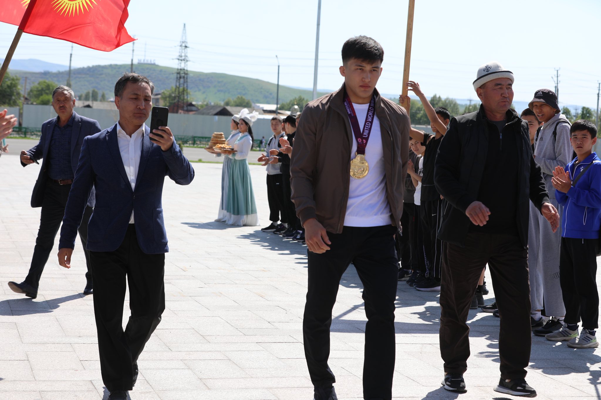 Иш-чарага Манас шаарынын мэри Абдупата Маткаликов, шаардык кеңештин төрагасы Аскат Талант уулу, чемпиондун жакындары, машыктыруучулары жана Р. Санатбаев атындагы спорт мектебинин окуучулары катышты.