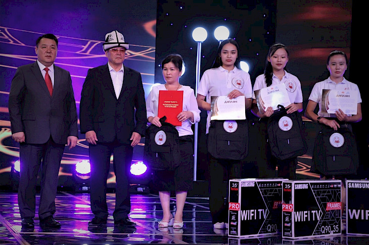 Окуучуларга жана аларды даярдаган мугалимдерине смарт-сыналгылар, ноутбуктар, уюлдук телефондор, муздаткычтар жана кызыктыруучу сыйлыктар ыйгарылды.