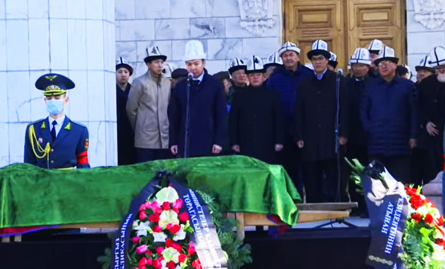 Маркумду акыркы сапарга узатуу зыйнаты Абдылас атындагы опера жана балет театрынын алдында өттү. Жыйынды маданият министри Азамат Жаманкулов алып барып, мамлекеттик катчы Сүйүнбек Касмамбетов, Кыргыз эл жазуучусу Мелис Абакиров, Кыргыз эл артисти Геннадий Базаров, Театр ишмерлер бирикмесинин төрагасы Жаныш Кулмамбетов, жана башкалар сүйлөдү.