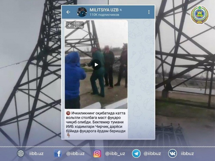 Ташкент ОИИБинин маалыматына караганда окуя 4-мартта 17:45 чамаларында болгон. Бектемир районунун милиция кызматкерлери базардан өтүп бара жаткан кезде электр таянычына чыгып бараткан кишини көрүп, аны суицидге барчу жолунан кайтаруунун көздөшкөн.