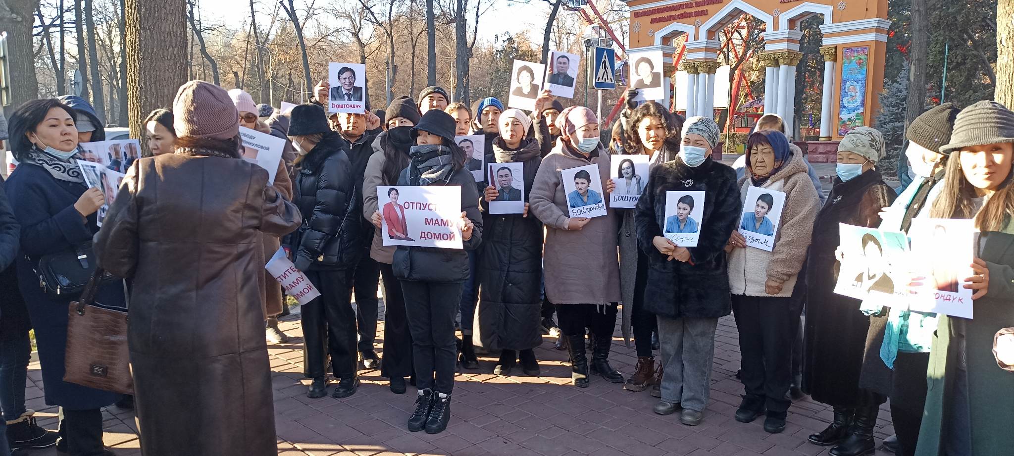 Абакта жаткан саясатчы, активисттердин жакындары бүгүн, 20-декабрда Бишкектеги өкмөт үйүнүн жанына нааразычылык акциясына чыгышты.