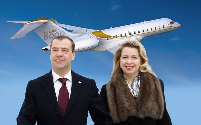 Россиянын премьер-министри Дмитрий Медведевдин аялы 50 миллион долларга тете “Bombardier Global Express 5000” жеке учагын ырааттуу түрдө колдонууда.