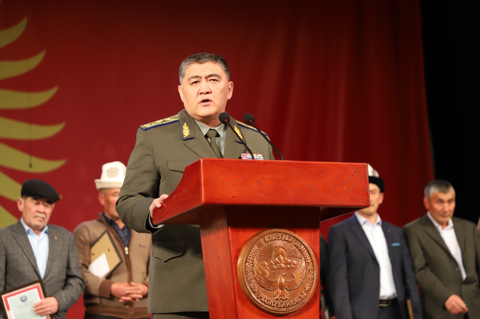Иш-чаранын жүрүшүндө УКМК төрагасы Камчыбек Ташиев жалпы мекен коргоочуларын майрамы менен куттуктап, өлкө тынчтыгы жана коопсуздугу үчүн ак дилден кызмат өтөөнү уланта берүүсүн каалады. Ошондой эле Баткен окуясында курман болгон жоокерлердин эрдигине таазим кылып, алардын жакындарына ыраазычылыгын билдирди. Төрага баатырлардын эрдиги эч качан унутта калбасын кошумчалаган.