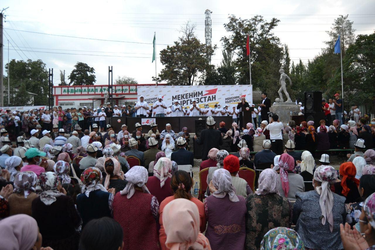 "Мекеним Кыргызстан" партиясынын үгүт кербени өлкө ичиндеги өз жүрүшүн улантууда. Үгүт кербени Ош облусунун Отуз-Адыр, Кызыл-Суу, Жаңы-Арык, Мады, Катта-Талдык жана башка айылдарында болуп, жергиликтүү тургундар партиянын талапкерлерин жигердүү тосуп алышты.