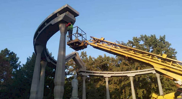 Алмамбетованын айтымында, "Тазалык" ишканасынын кызматкерлери эстеликтеги плиткаларды кайрадан чаптап чыкты.