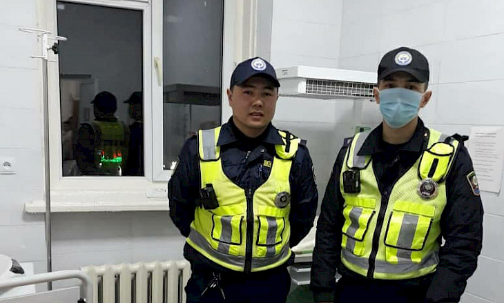 Бул көрүнүштү көргөн милициянын кайгуул кызматкерлери Турганбай уулу Шабдан жана Өмүрбек Алдаяров ошол замат чечим кабыл алып, боюнда бар айымды кызматтык унаага отургузуп, тез аранын ичинде Шопоков жана Москва көчөлөрүнүн кесилишинде жайгашкан төрөт үйүнө жеткиришкен.