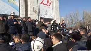 Учурда эл тарай элек. Алар бийлик өкүлдөрүнө жолугуу үчүн кеткен 5-6 адамды күтүп турмай болушту. Эл арасына милиция кызматкерлери келе баштады. Үн күчөткүчтөр менен тартипти сактоого чакырык жасалды.