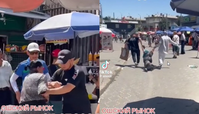 Ленин райондук ички иштер башкармалыгы «Ош» базарында жаш жигит аялды жерге жаткарып сүйрөгөнү тартылган видео боюнча териштирүү жүргүзүүдө. Бул тууралуу милициядан билдирди.