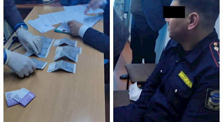 Ошентип, 12-апрелде болжол менен саат 15:10 чамасында ИИМдин Ички иликтөө кызматынын кызматкерлери тарабынан Ички иликтөө кызматынын кызматык бөлүмдөрүнүн биринде 10 миң сом акча каражатын берип жаткан жеринен Бишкек шаардык Милициянын кайгуул кызматынын автотранспорт-чарба бөлүмүнүн инспектору Б.У. ИИМдин Тергөө кызматына жеткирилип, андан соң Бишкек шаарынын ИИББнын убактылуу кармоочу жайына киргизилген.