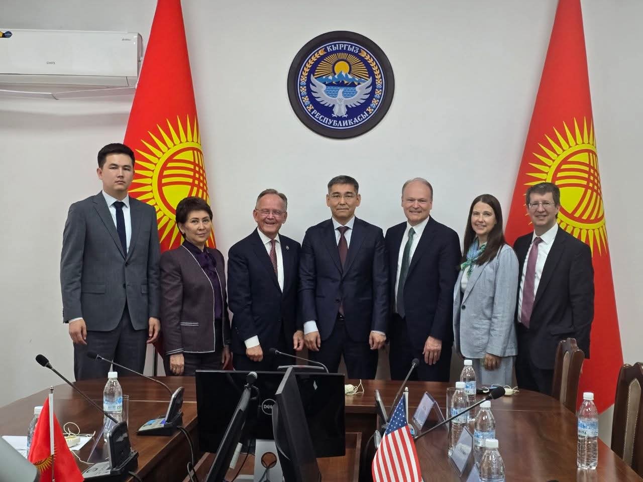 Бүгүн, 2026-жылдын 27-апрелинде Кыргыз Республикасынын Саламаттык сактоо министрлигинде саламаттык сактоо министри Дамир Осмонов АКШнын Юта штатынын Сенатынын президенти Дж. Стюарт Адамс жетектеген АКШнын делегациясы менен жолугушуу өткөрдү.
