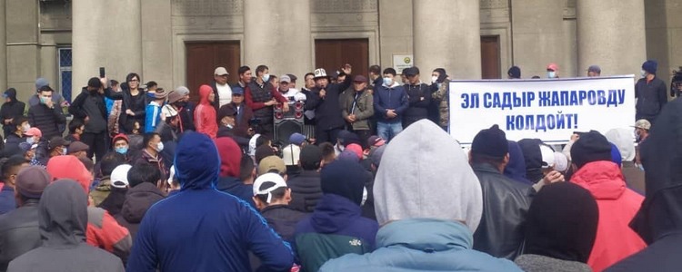 Ысык-Көл мейманканасынын алдындагы митинг дагы деле уланууда.