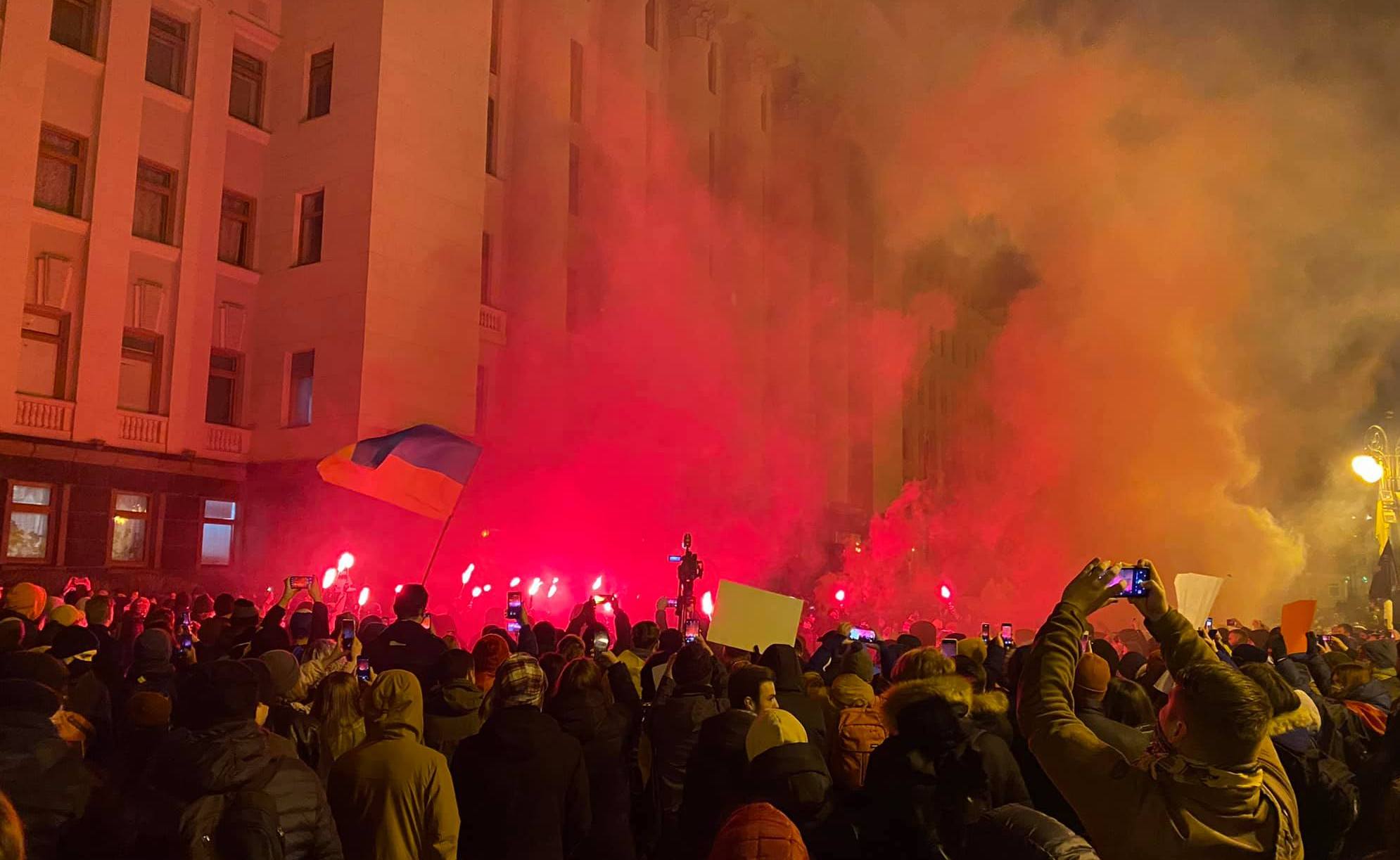 Ишемби күнү Украинанын президентинин кеңсесинин жанында митинг орун алып, анда активисттер имаратка боёк чачып, эшикке өрт коюуга аракет кылышкан. Киев полициясы бул иш-чараларды бейбаштык деп мүнөздөгөнүн чет элдик басылмалар жазышты.