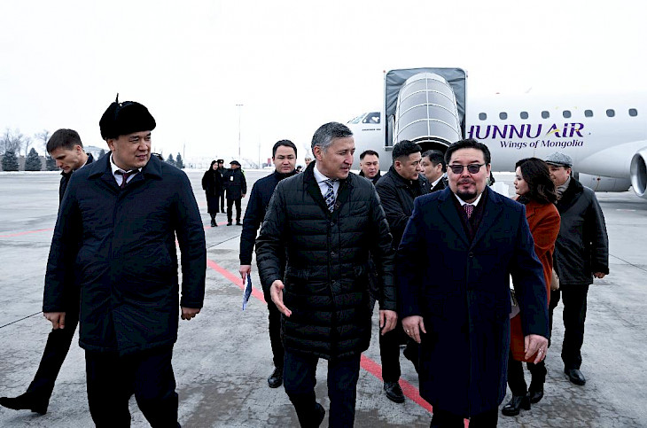 Сыйлуу конокту «Манас» эл аралык аэропортунан Жогорку Кеңештин төрагасынын орун басары Нурланбек Азыгалиев жана Монголия менен кызматташтык боюнча депутаттык достук тобуну жетекчиси Улан Бакасов тосуп алды.