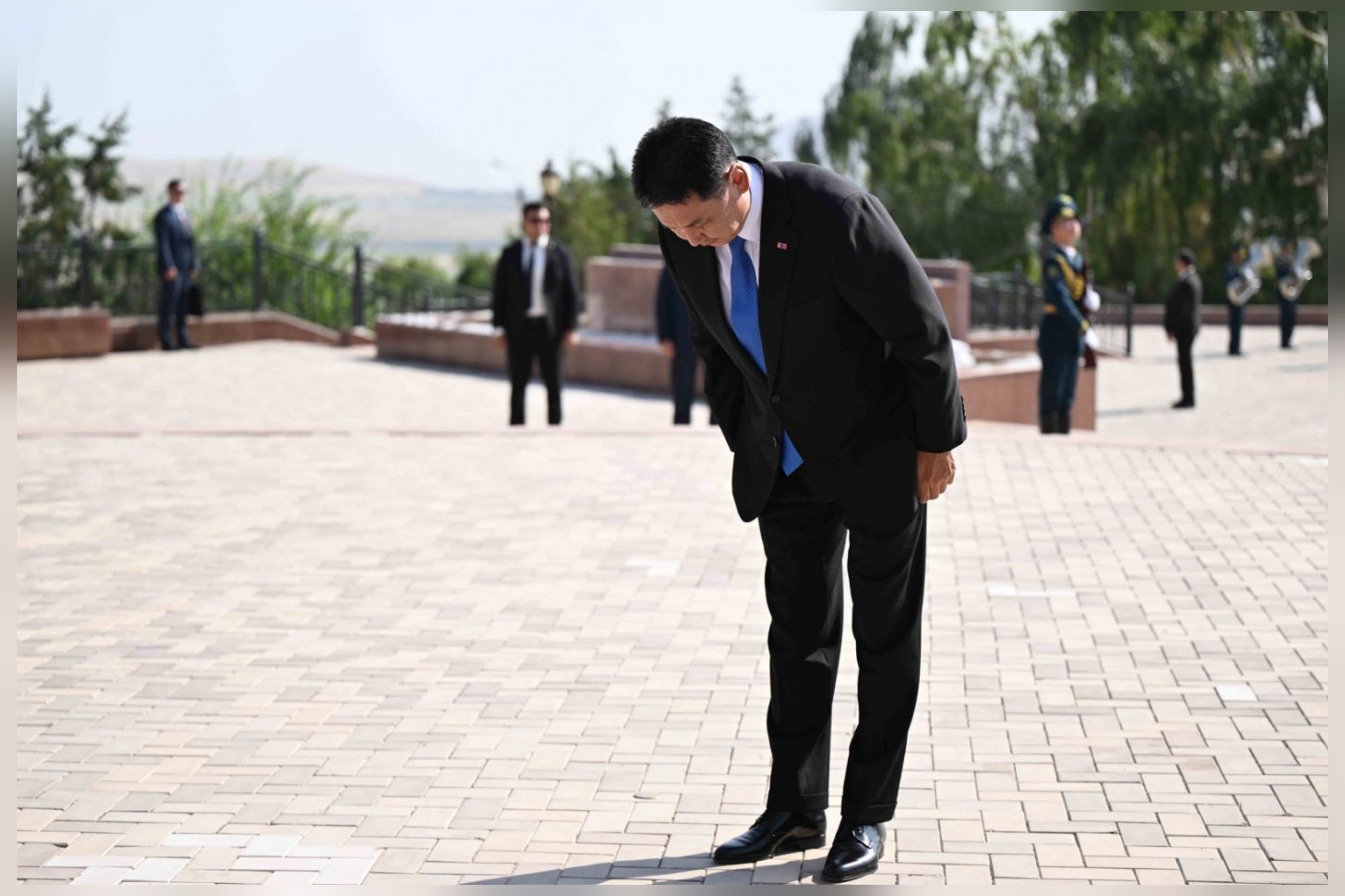 Моңголиянын президенти Министрлер кабинетинин төрагасы Адылбек Касымалиевдин коштоосунда 1916-жылдагы каргашалуу окуялардын курмандыктарына арналган мемориалга гүлчамбар койгон.