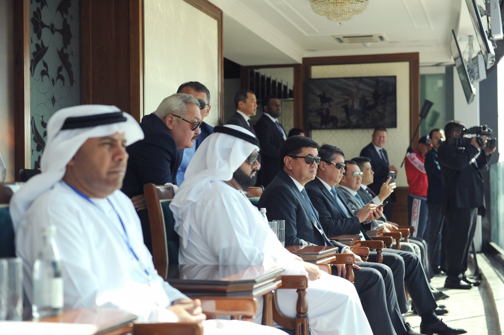 Кыргыз Республикасынын Премьер-министри Мухаммедкалый Абылгазиев жана Бириккен Араб Эмираттарынын Эль-Фуджейра Эмиратынын ханзаадасы шейх Мохаммед бин Хамад бин Мохаммед Аль Шарки Кыргызстан жана Монголиянын курамаларынын ортосунда III Дүйнөлүк көчмөндөр оюндарынын алкагында Ысык-Көл облусунун Бактуу-Долоноту айылындагы ипподромдо өткөн көк бөрү оюнуна барышты.