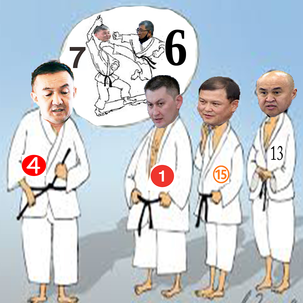 № 6 “Ата-Мекен” партиясынан, экс -милиция кызматкери жана экс-журналист, булбулдай сайраса парламенттеги бардык депутаттарын уктаткан Рыскелди Момбеков дзю-до боюнча кара пояска талапкер. Орусия президенти Владимир Путин менен дзю-до боюнча алышкысы келип жүрөт. Эгер дзю-до боюнча кара поясы бар Путинди жеңсе кара пояс алышы толук мүмкүн.