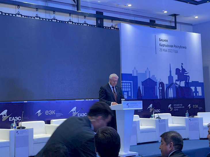 Белгилей кетсек, экономикалык форум Кыргызстандын Евразиялык экономикалык биримдиктин органдарында быйыл төрагалыгынын алкагында Жогорку Евразиялык экономикалык кеңештин жыйынынын алдында өтүүдө.