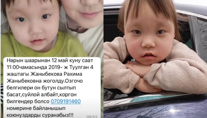 Нарында 12-майдан бери 4 жаштагы Рахима Жаныбекова изделүүдө. Бул тууралуу укук коргоочу Назгүл Турдубекова кабарлады.