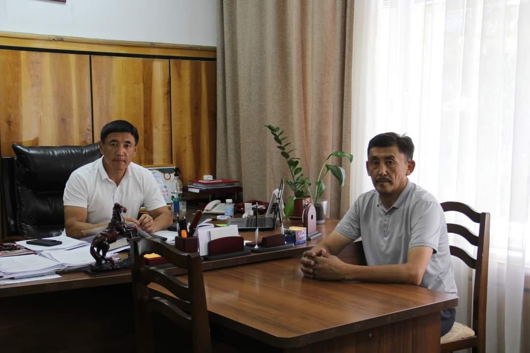 Нурсултан Жаныбековдун атасы Таалайбек Осонов Нарын шаарынын мэри Канболот Тутуев менен жолугушуп, 50 миң сом тапшырган.