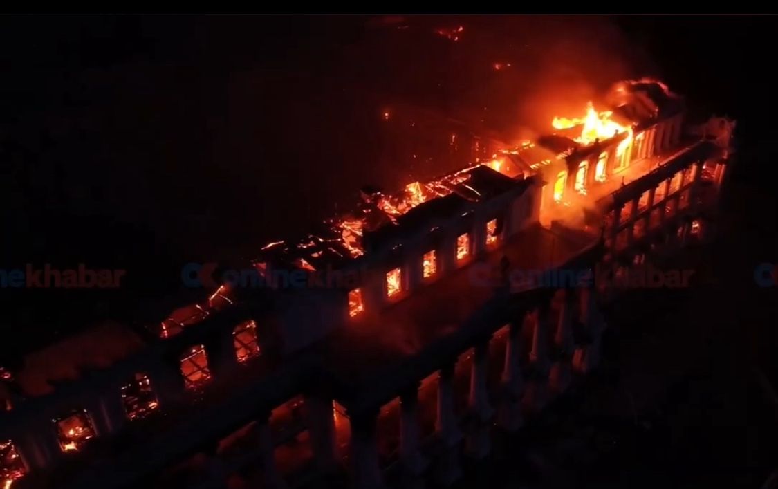 Непал сарайы толугу менен өрттөнүп кетти.Аны эч ким өчүрүүгө аракет кылган жок.