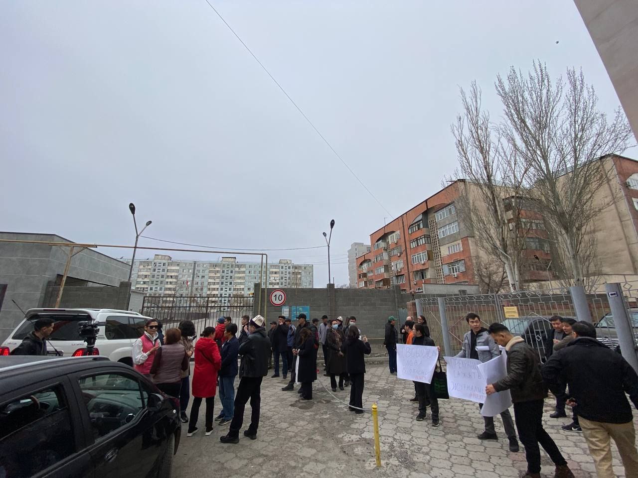 Next TV телеканалынын директору Таалай Дүйшембиевдин бошотулушун талап кылгандар 5-мартта Бишкектин Биринчи май райондук сотунун алдына чогулушту. Алар журналисттерге, сөз эркиндигине басым жасоону токтотууну талап кылган жазуулары бар плакаттарды көтөрүп турушат.
