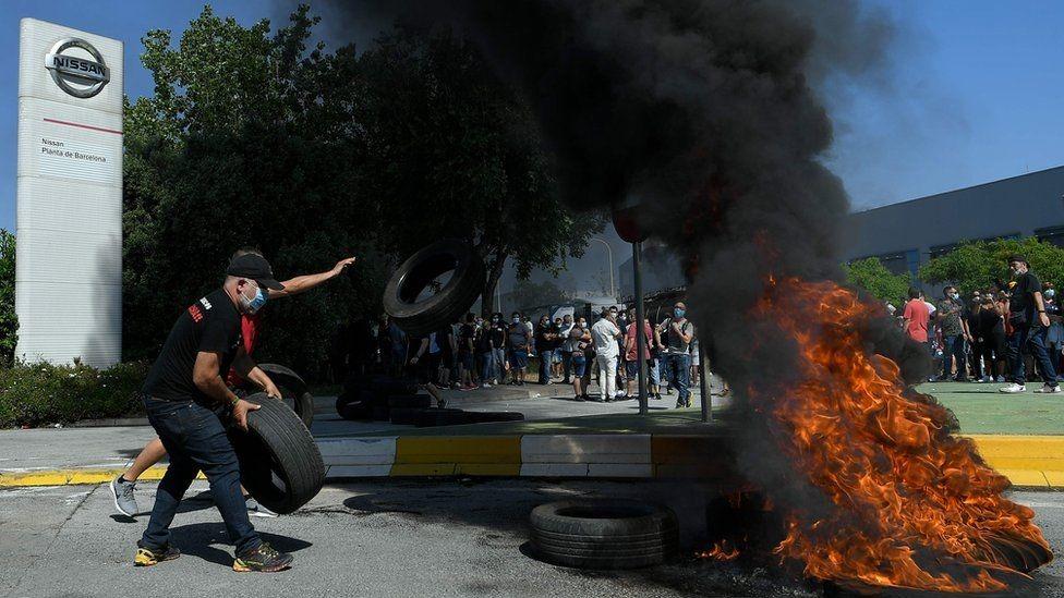 Барселонада "Nissan" япон унаа концернинин заводунун айланасында жумушсуз калган кызматкерлер каршылык акциясына чыгышты. Бул тууралуу чет элдик басылмалар жазып чыкты.