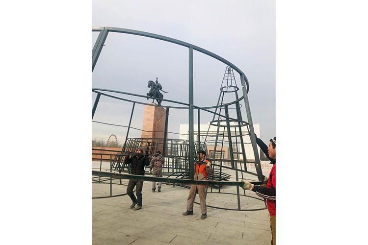 Бишкекте Ала-Тоо аянтында бийиктиги 25 метр, диаметри 12 метрди түзгөн жаңы жылдык балаты орнотула баштады.