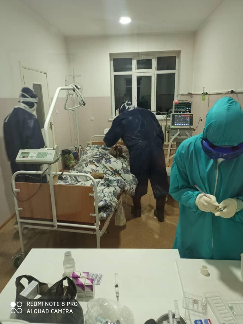 "Бейтап бизге оор абалда түшкөн. Дем алуусу начарлап, дене табы көтөрүлүп, жөтөлүп келген. Саламаттыкты сактоо министрлигинин штаттан тышкаркы башкы пульмонологу Талантбек Сооронбаев жана инфекционист Айнура Кутманова жана реаниматологдор менен консилиум кылып, дарылоого кириштик. Бейтапка аба жетпей калгандыктан, 6 концентраторго коштук. Организмди аба менен камсыздап турдук. Андан соң мүнөтүнө 30 литрдей аба менен камсыз кылган бочкадагы суюк абаны коштук. Бейтаптын дем алуусу жеңилдей түштү. Андан соң антибиотиктерди берип баштадык. Оорунун оорлугунан боор, бөйрөктөрү жарактан чыгып, кан басымы көтөрүлүп баштады. Бул вирус организмдин баарын өлтүрөт. Ал бардык органдарга кедергисин тийгизди. Антибиотиктер менен бирге вируска каршы дарылар да берилип жатты. Дарыгерлердин профессионалдуулугу менен бейтапты оор абалдан алып чыгып, ооруканадан чыгардык. Эми ал 14 күндүн үй карантининде болмокчу", - деп айтылат маалыматта.