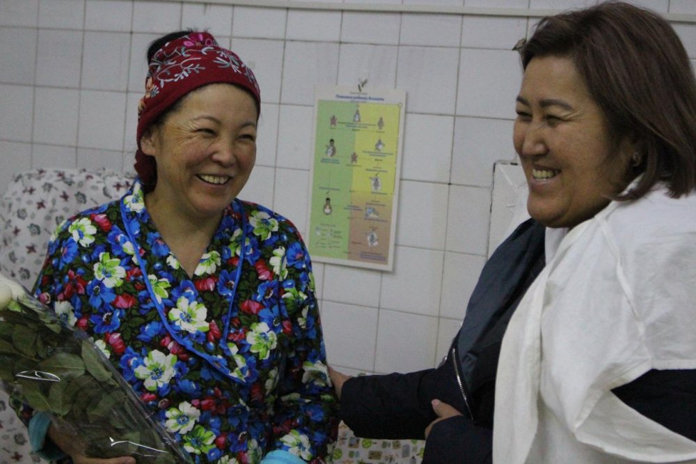 Бишкек шаарынын Октябрь районундагы социалдык өнүгүү башкармалыгынын башчысы Рейна Султанмуратова жана ал райондук акимиаттын социалдык бөлүмүнүн жетекчиси Зарема Өмүрзаковалар эгиздердин апасынын ал-акыбалын сурап, куттуктап кетишкен.