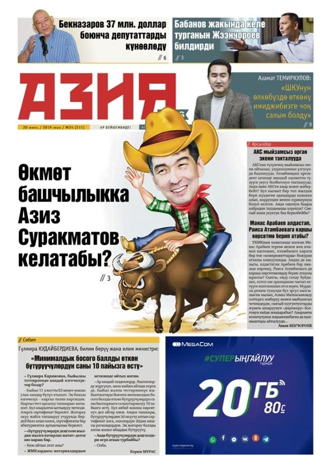 Бишкек мэри Азиз Суракматов ортозаар гана ишмердиги менен көрүнө алды. Анчалык реформатор экенин байкай албадык. Бирок… Бизге жеткен маалыматтар боюнча, өкмөт башчы Абылгазиевди кетирип, анын ордуна Суракматовду алып келүүгө камылгалар башталыптыр. Абылгазиев кыйратпаган, мунусу жыргатабы? Эмне үчүн Азиз мырза премьер-министрликке тапталууда? Себеби, саясый амбициясы жок, буйрукту «кыңк» дебей аткарат.