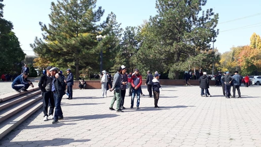 Бүгүн, 16-октябрда өкмөт үйүнүн алдында жүзгө жакын адам чогулду. Алар премьер-министр Садыр Жапаровдун келишин күтүп жатышат.
