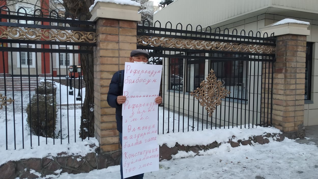 Бүгүн, 2-декабрда Конституциялык палатанын имаратынын алдына активист Өндүрүш Токтонасыров митингге чыкты.