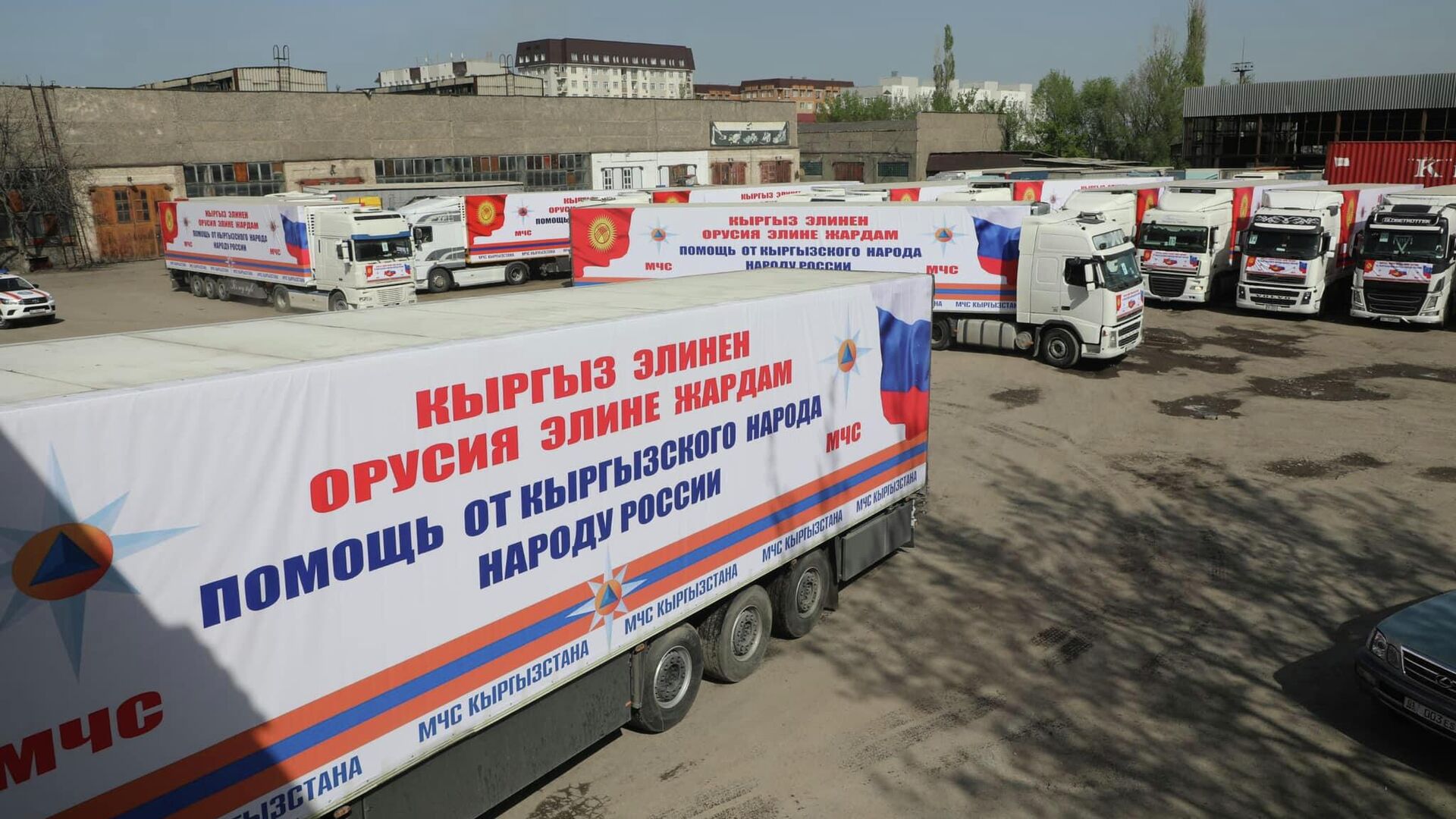 Буга чейин Садыр Жапаров Россиянын суу каптоодон жабыркаган облусуна 350 тонна жардам жөнөтүүнү тапшырган. ӨКМ кызматкерлери аны 20 фура менен алып барат.