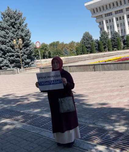 Маалыматка ылайык, дайынсыз болуп изделип жаткан Орхан Инандынын жубайы Рейхан Инанды Ак-Үйдүн алдында "Орхан Инанды табылабы?" деген жазуусу бар плакат көтөрүп, жалгыз митингге чыкты.