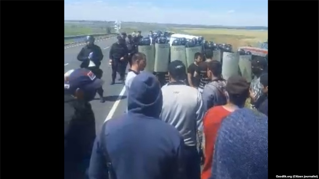 Күбөлөрдүн айтымында, жол тоскондорду полиция кууп тараткан. Натыйжада тартип сакчылары менен мигранттардын ортосунда тирешүү болуп, полициячылар бир нече кишини резина союлдар менен сабашкан. Бирок Оренбург облусунун Бузулукский районунун полициясы бул маалыматты четке какты.