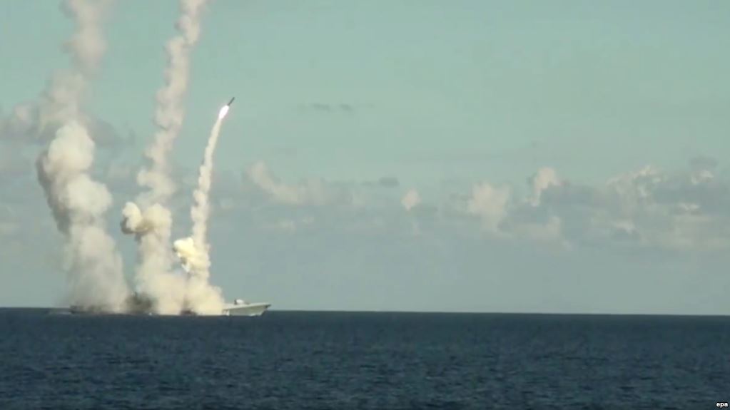 Жер ортолук деңизде жайгашкан орусиялык “Краснодар” суу алдында жүрүүчү кемеси жана “Адмирал Эссен” фрегаты төрт “Калибр” аттуу канатуу ракеталарын Сириядагы “Ислам мамлекети” экстремисттик тобунун позицияларын көздөй коё берди.